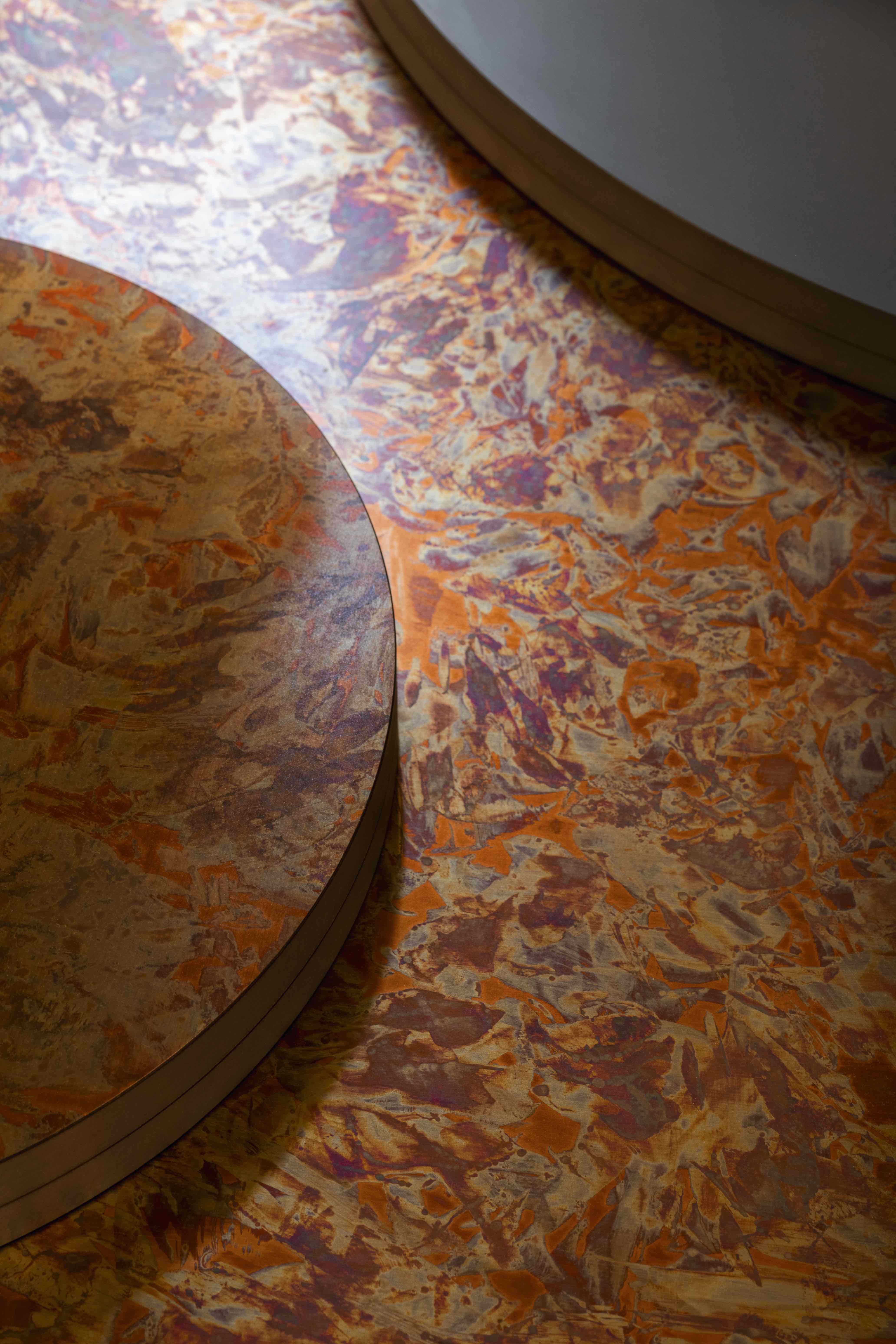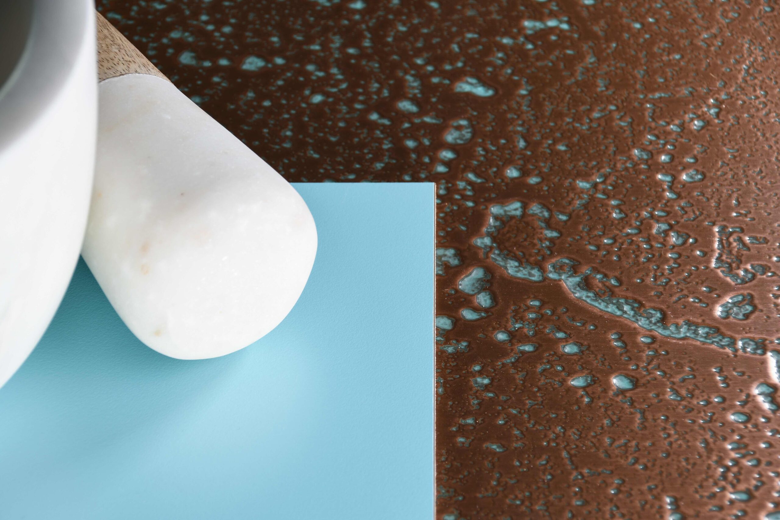 Acciaio, rame, ottone e acciaio inox assumono invece nuova vita nell’ampia varietà di proposte dell’universo Homapal, attraverso uno spettro di decori e colori che prende forma in superfici realizzate in vero metallo. Il carattere e il lavoro artigianale si fondono in prodotti dalle texture ed i riflessi stimolanti, capaci di immergerci in universi fantasiosi.